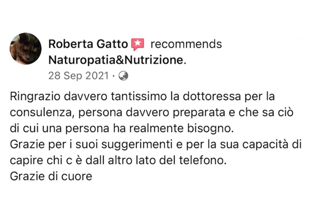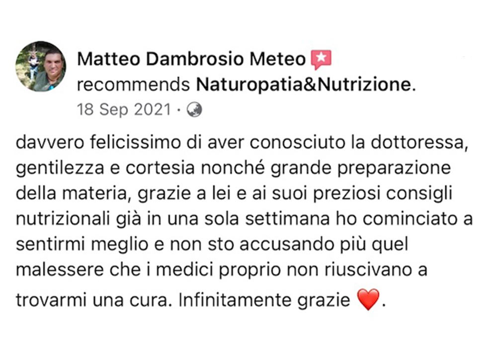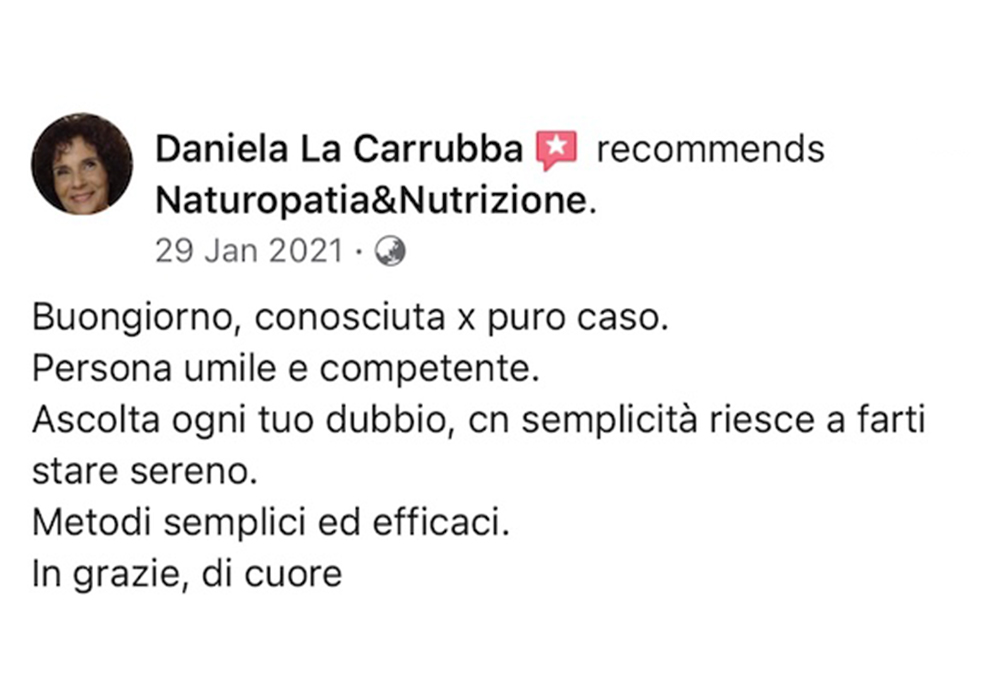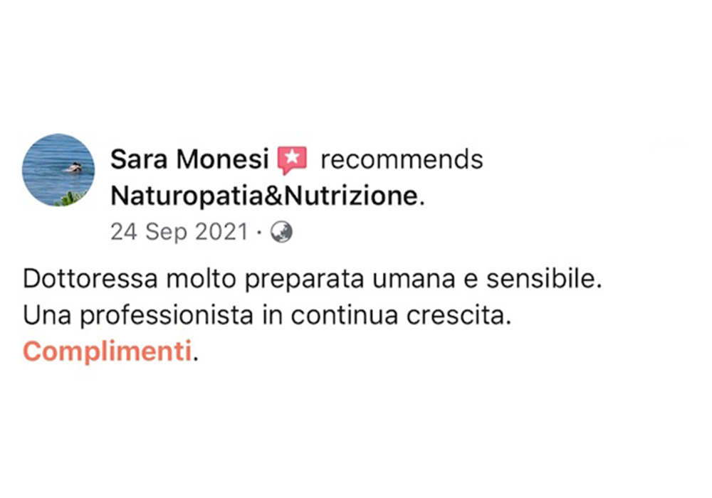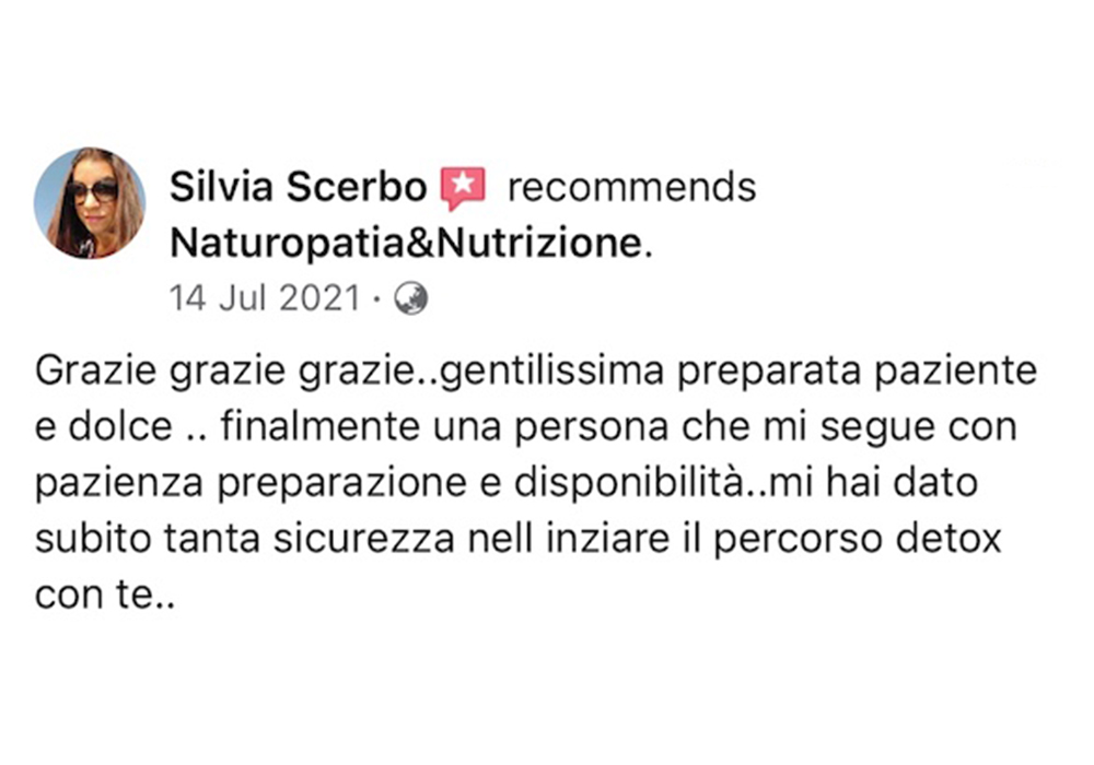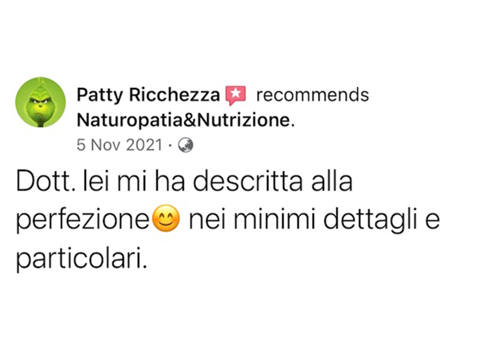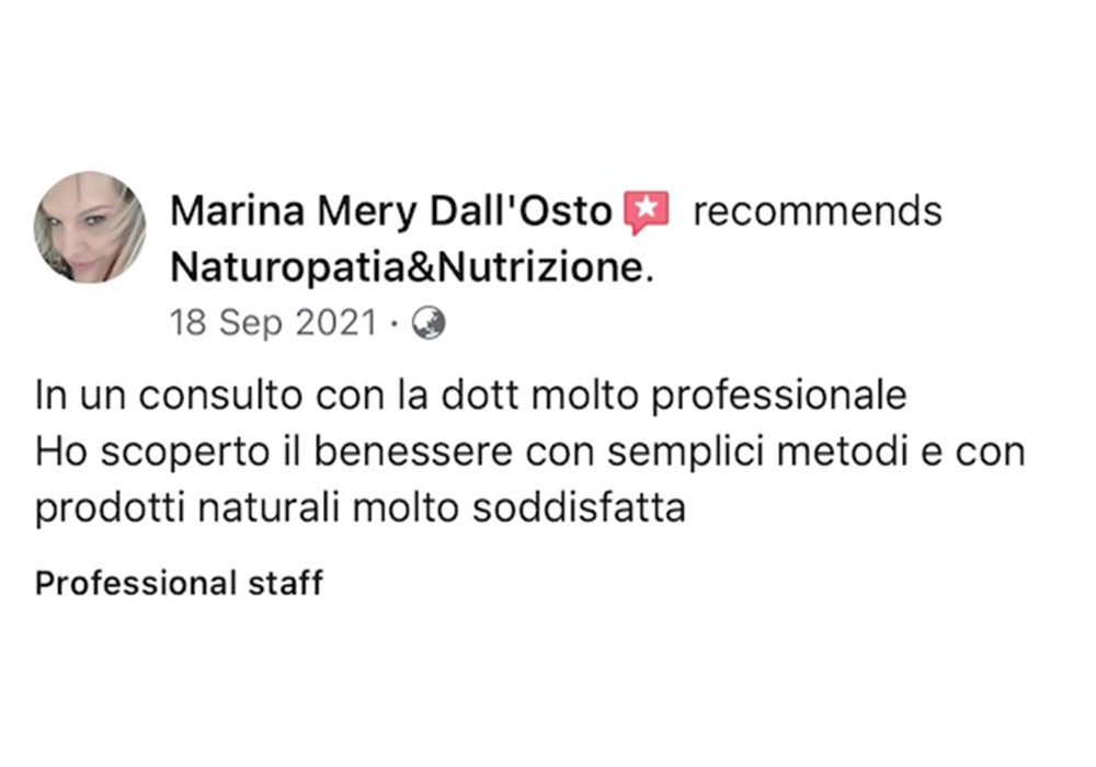 “Leggere le recensioni dei miei clienti mi permette di avere un feedback diretto sul mio lavoro e sulle mie competenze in campo naturopatico. Inoltre, mi aiuta a comprendere meglio le esigenze e le aspettative dei miei pazienti, consentendomi di migliorare costantemente il mio servizio e di offrire loro soluzioni personalizzate e efficaci per migliorare il loro benessere fisico e mentale.”